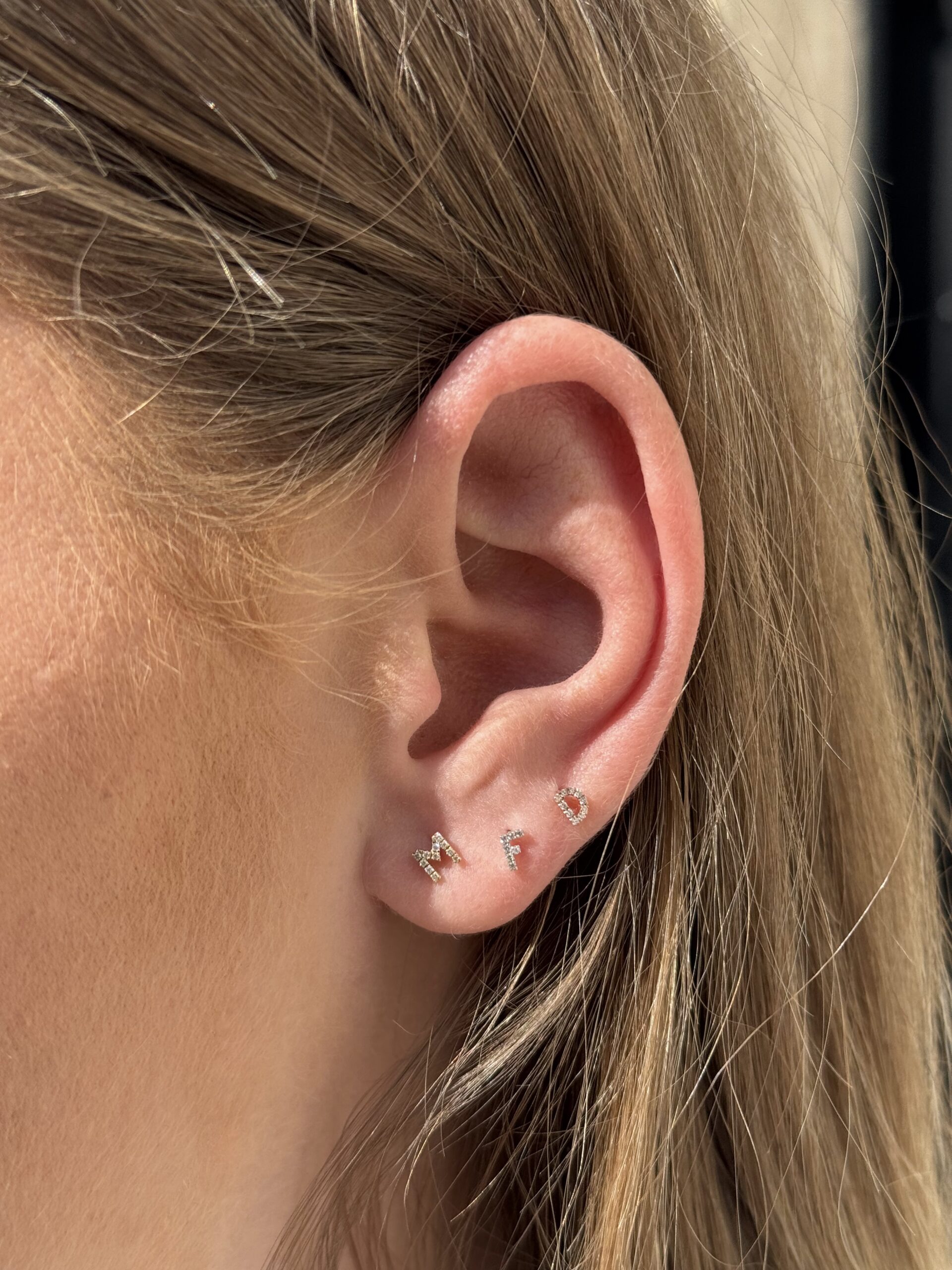 Kusová náušnica Písmenko 14kt zlato prírodné diamanty