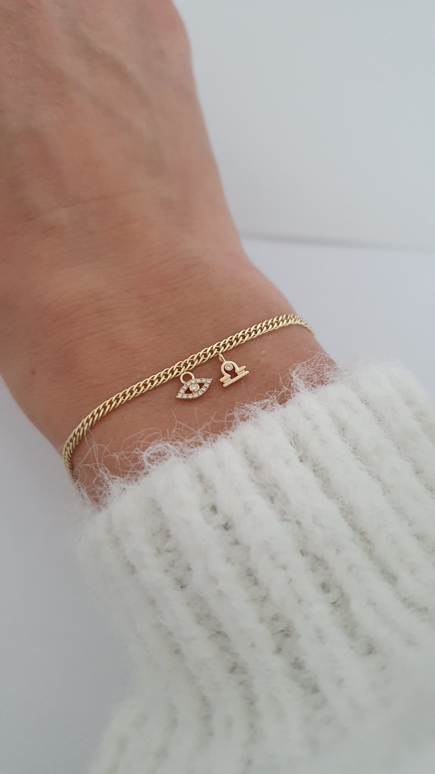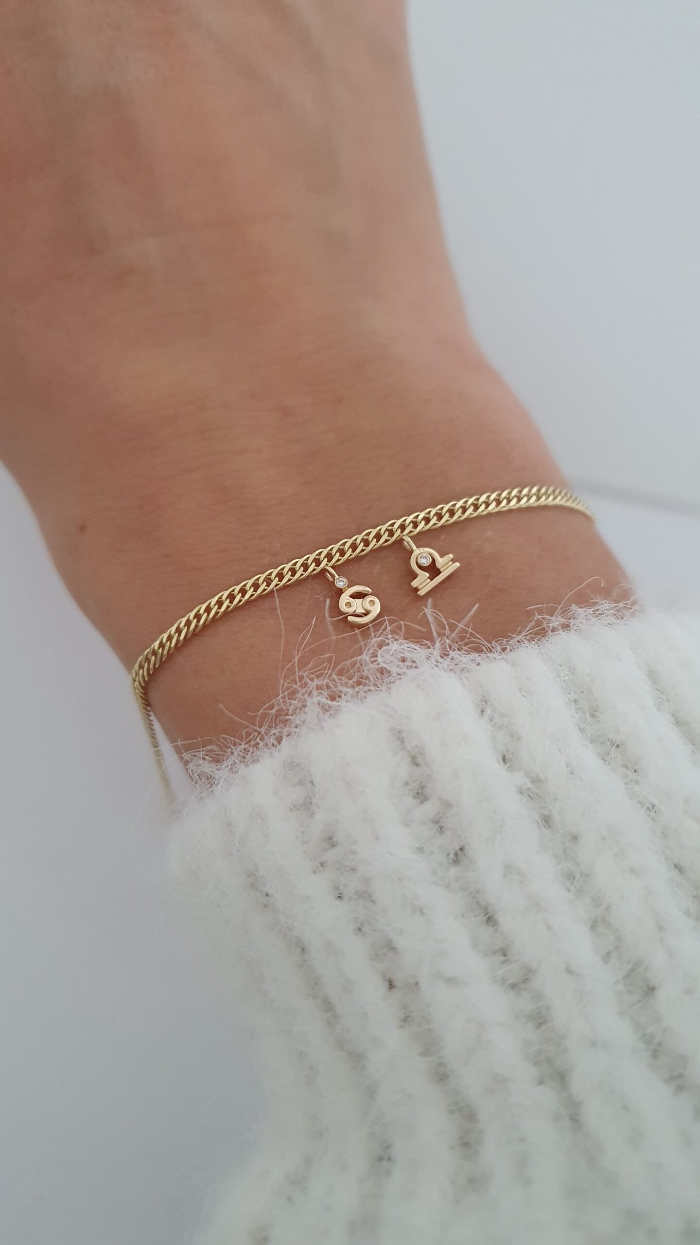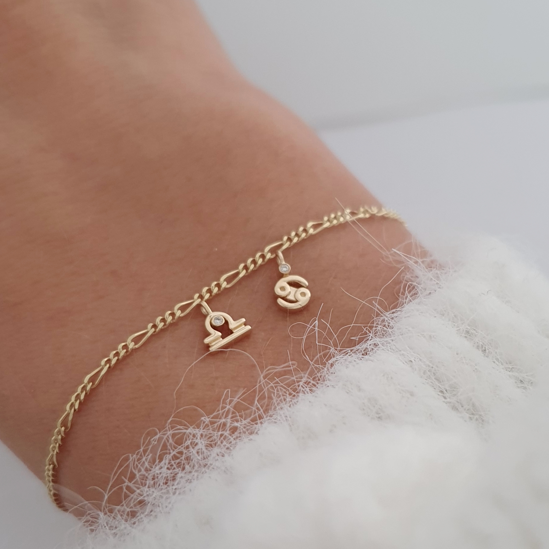 Prívesok na permanentný náramok Zodiac žlté zlato 14Kt prírodný diamant 0,01 ct